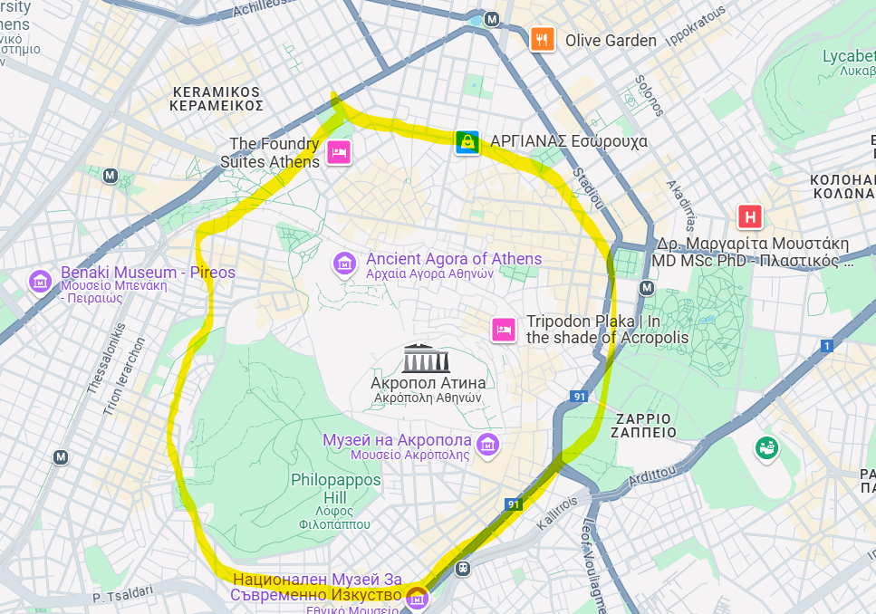 ВАЖНО! Задължително избягвайте района на Omonia и Metaxourgeio. Вечер бъдете много внимателни дори и на центъра. Районът на Плака (Plaka) лично на мен ми се стори най-безопасен.