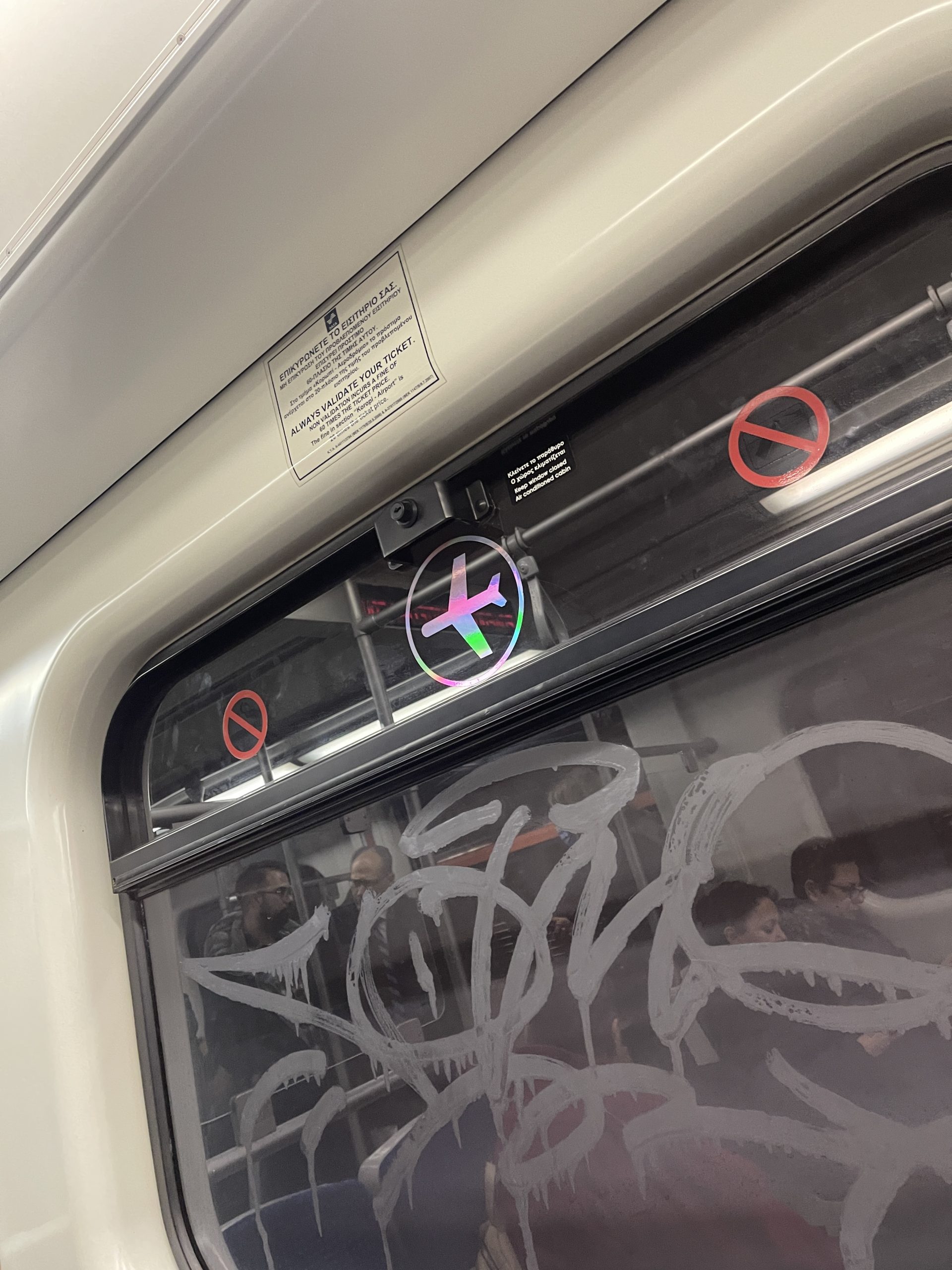 Pro tip: На връщане към летището бъдете внимателни кой влак точно хващате, защото тяхното метро е подобно на нашето. Не всеки влак по Линия 3 ходи до летището. Общо взето са през един. На таблата по спирките си пише дали влакът е за летището, а за ориентира могат да си послужат и самолетчетата по прозорците (снимката по-долу). Казвам ви го, защото аз не го знаех това и за малко да си изпусна самолета 😀