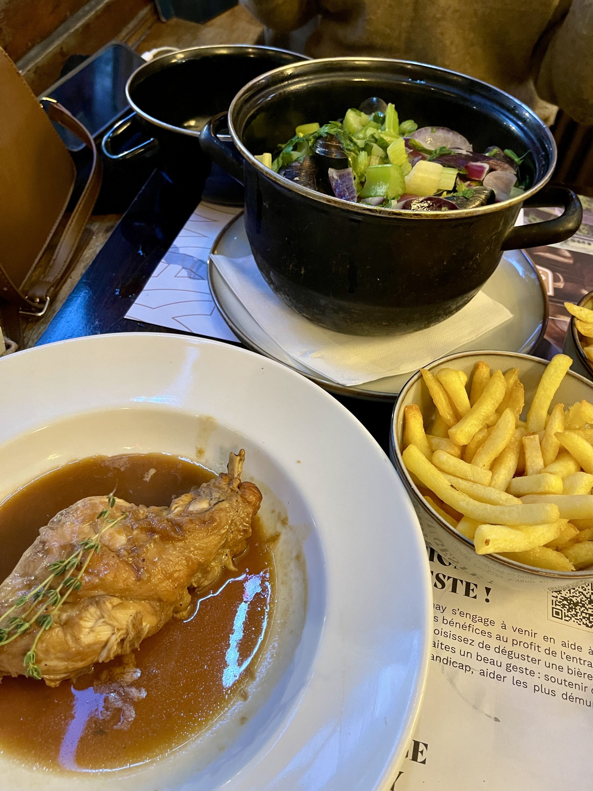 3. Миди с пържени картофи (Moules-frites) – Да, и на мен това ми се стори като супер странна комбинация, но това е сред традиционните ястия тук. Мидите се сервират с бульон от вино, чесън или дори сметана и са невероятно вкусни. И са с картофи. Както казах по-горе – тук всичко се яде с картофи.