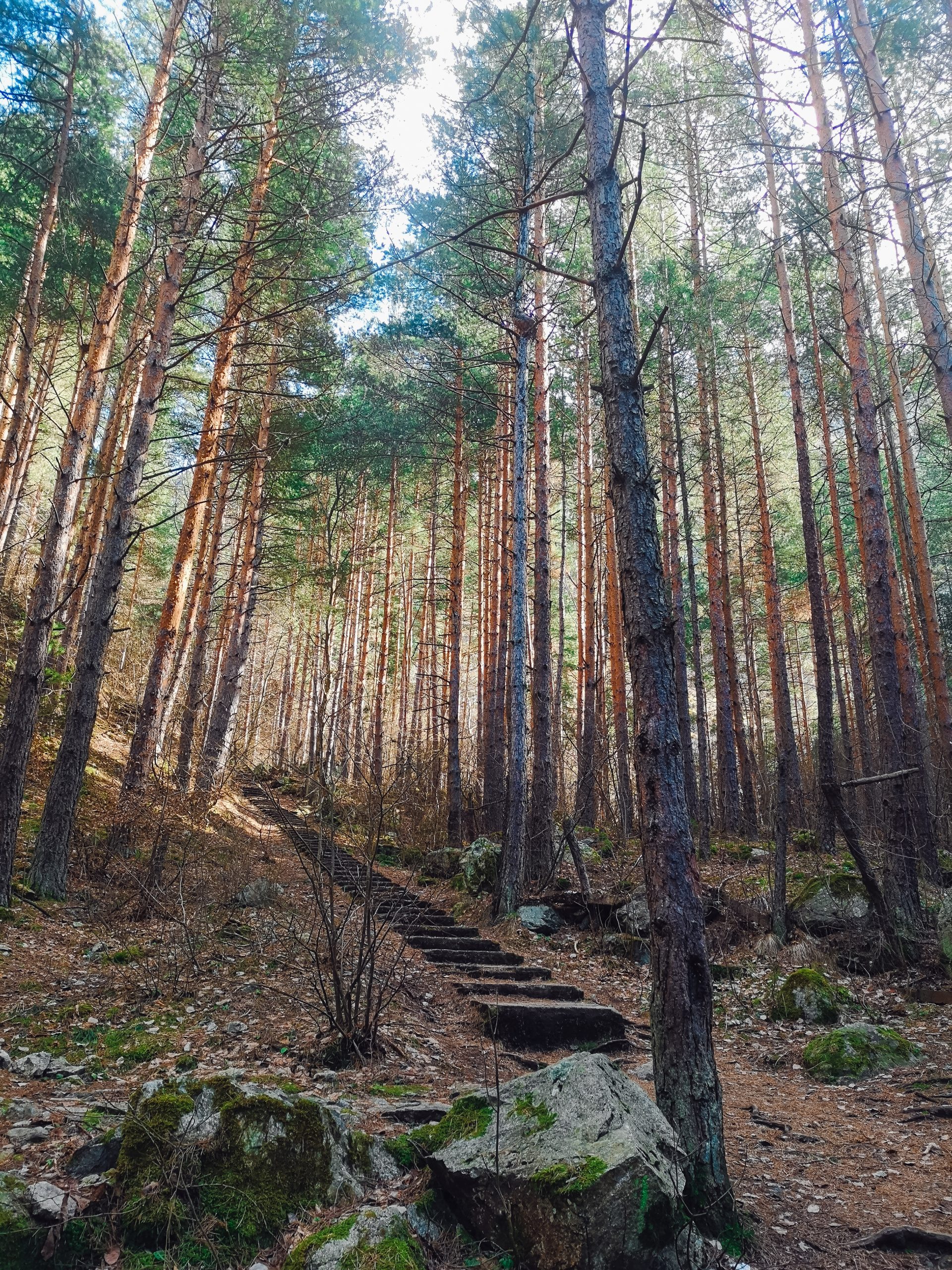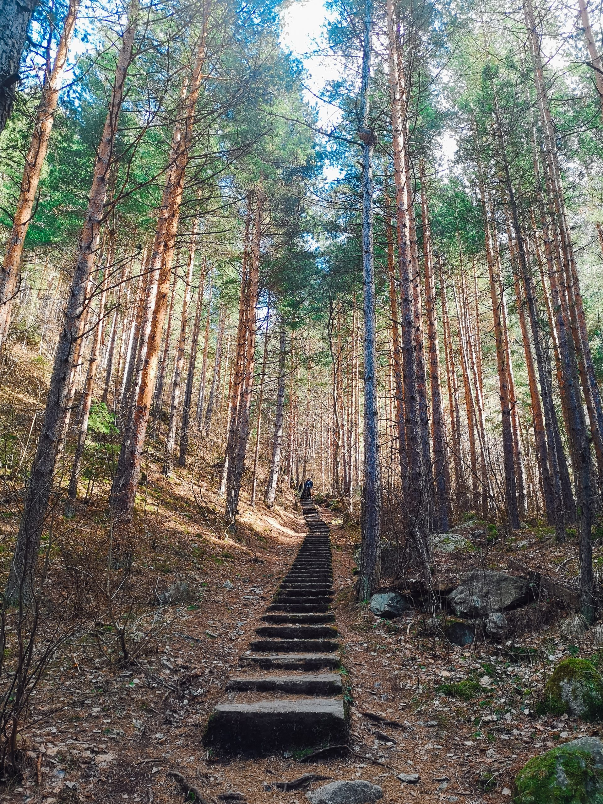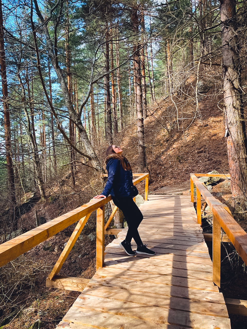В началото на екопътеката има информационни табели, така че няма как да я подминете. Ще я видите в дясно на вас. Изкачвате няколко каменни стъпала, след тях завивате в дясно и продължавате разходката по гориста пътечка. Бъдете с удобно обувки, защото пътеката е пълна с неравности и камъни (все пак сте в гората). Няколко минутки след това ще стигнете до други каменни стълби, които пък ще ви отведат до малко дървено мостче. Преминавате мостчето и та-дааа – пред вас се открива спиращата дъха панорамна гледка към водопад Горица.